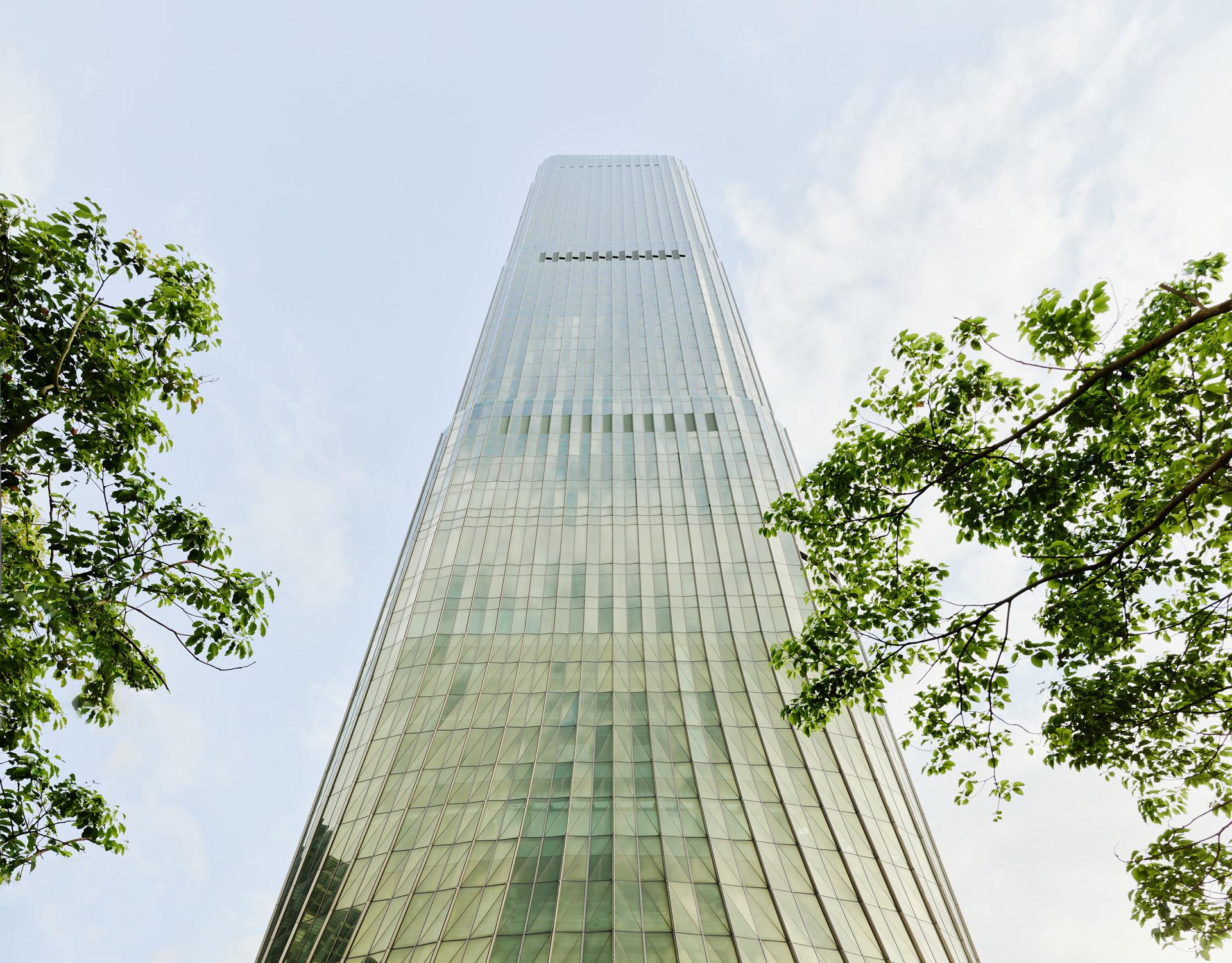 The architectural language draws inspiration from both the Eastern and Western traditions. With its curved silhouette, pleated façade and nuanced green hue, the tower reinterprets both the natural form of bamboo shoots and the fluted geometry of Classical Greek columns. This synthesis generates a luminous, vegetal surface that responds to light throughout the day: an elegant skin that both reflects and animates the urban context.